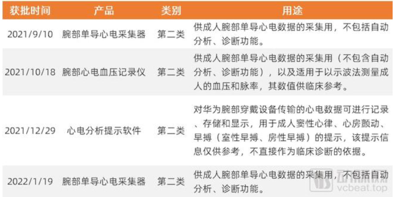 2021年华为获得医疗器械注册证的产品,资料来源:国家药监局,动脉网整理制图