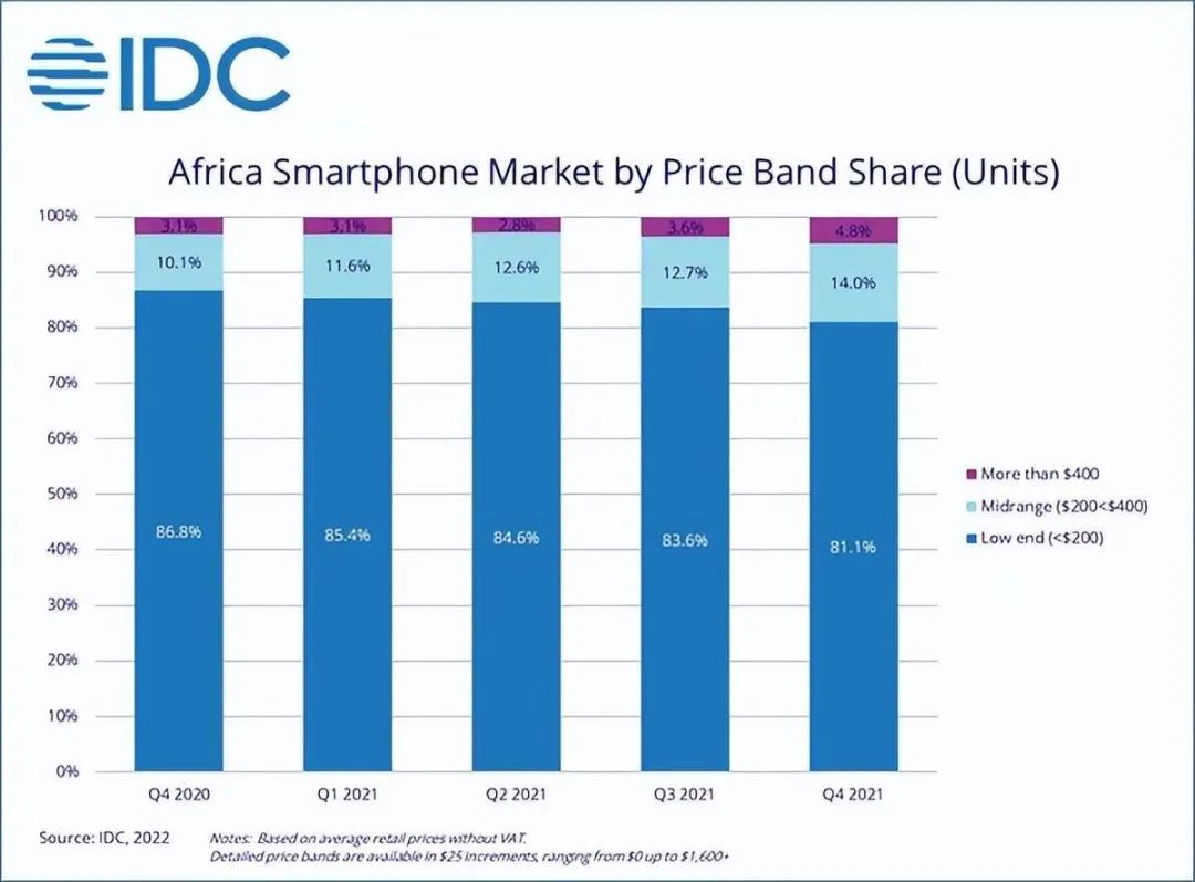 Boomplay脱胎于非洲“机皇”传音,根据IDC公布的最新数据,在智能手机市场,传音手机已经占据了47.9%的份额,遥遥领先于19.6%市场份额的三星,第三名则是小米,占据7.1%的份额;在功能机方面,传音手机的非洲市场优势更加明显,总计占比78%。