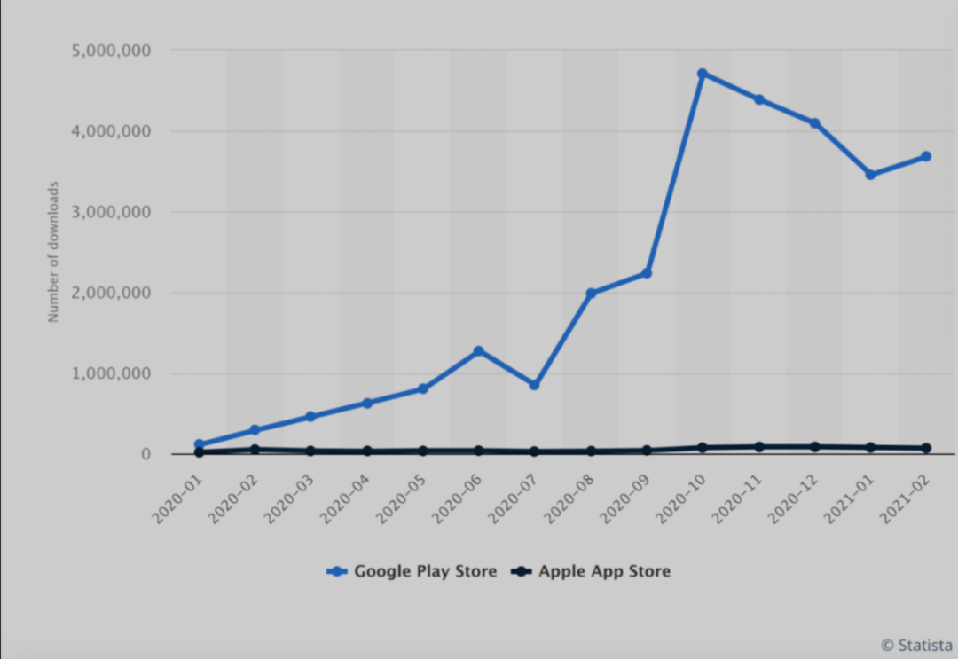 上线印度伊始,Resso便位居音乐类app下载榜榜首,且一直保持强劲的发展势头。