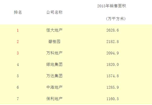 事实靠数据说话, 2015年的销售面积排行,万科第三。