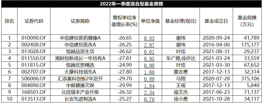 界面新闻综合收益率、波动率、择时与选股等多个综合的维度对上述混合型基金进行了评估,同时对上榜基金进一步筛选,剔除资产规模合计低于五千万,以及成立时间不超过三个月的基金,并排除非投资收益原因造成的净值上涨,整理形成一季度红黑榜。