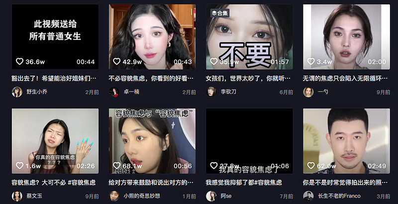 这种追求美好的理念本意不坏。但随着抖音内容生态的变迁、用户群体的增加,以及女性意识的觉醒,过分追逐美貌、制造容貌焦虑的氛围,已经引起了许多用户的警惕。