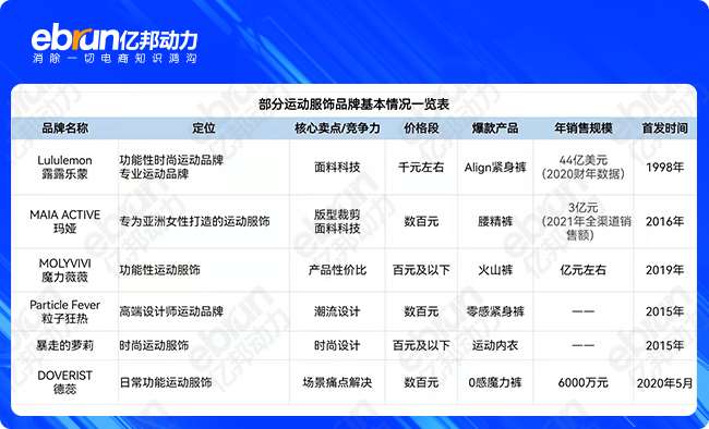 事实上,中国近年崛起一众本土新消费服饰运动品牌,比如Maia Active玛娅、Particle Fever 粒子狂热、暴走的萝莉、Molyvivi魔力薇薇、DOVERIST德蕊等。它们备受投资者追捧,但规模尚小,谁会成为与Lululemon比肩的品牌,目前还充满不确定性。