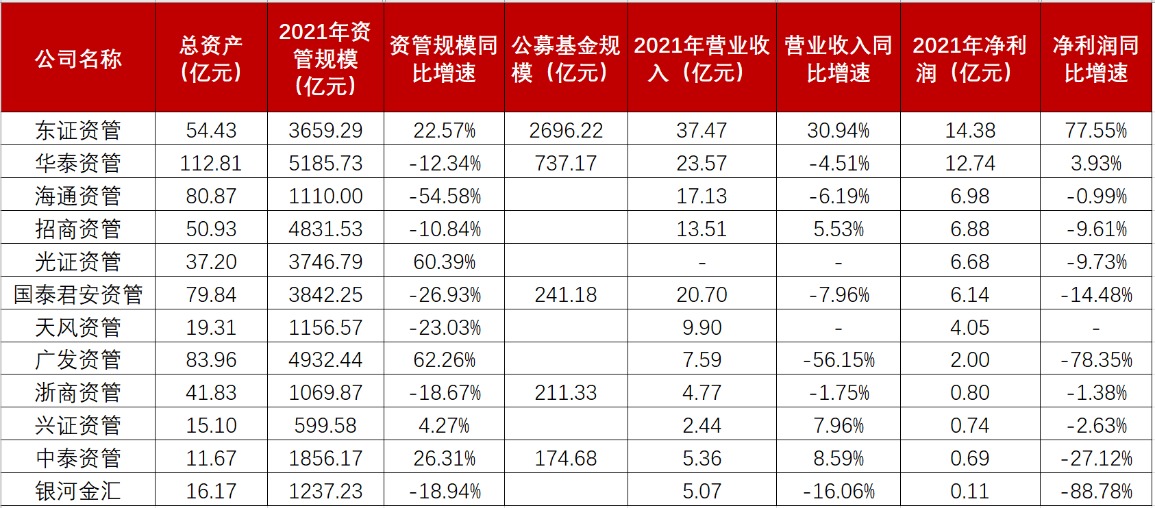 界面新闻记者整理上市券商披露的2021年年度报告发现,目前已有东证资管、华泰资管、海通资管等12家券商资管子公司披露了年度数据,头部机构集中度持续提高,“马太效应”日益明显。
