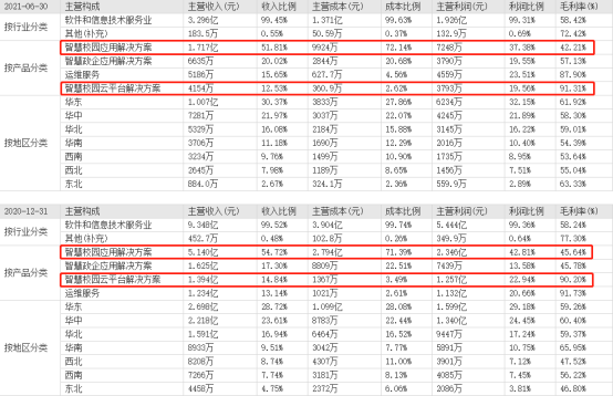 在新开普提到的“智能卡”的业务中,校园类一卡通及其相关服务又占据着公司最大营收比。以2020年6月至12月、2021年1月至6月两个半年报来看,校园服务占据公司收入比例高达69.5%、64.34%,净利润也分别达到65.75%、56.94%,堪称公司营收和净利润的绝对“顶梁柱”和“扛把子”。