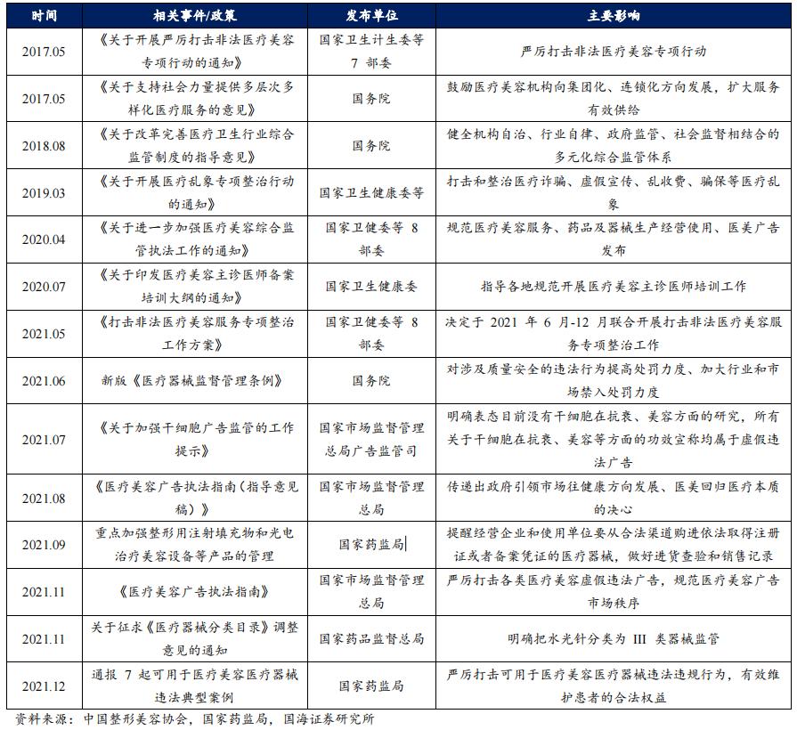 近几年,由于“黑医美”导致医美事故频发,国家针对医美行业乱象,监管趋严信号愈发强烈。