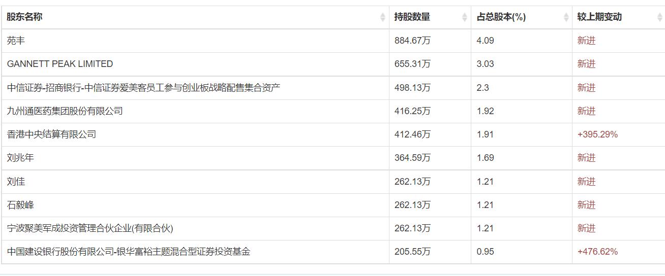 其中,GANNETT PEAK LIMITED、石毅峰、宁波聚美军成投资管理合伙企业(有限合伙)退出爱美客十大流通股东行列。天下美商还注意到,爱美客上市前的原始股东苑丰减持143.42万股,刘佳减持54.58万股,刘兆年减持204.31万股,GANNETT PEAK LIMITED减持281.72万股。