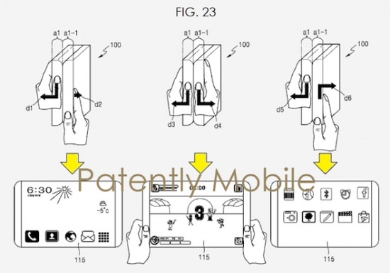 另外,该专利申请文件显示,显示屏边缘会显示若干用户简档,显示可折叠的设备具有解锁功能,另外还具有浮动显示区域控制功能,可以根据观看方向,控制浮动显示区域。不少传闻称三星将在年内推出可折叠的Galaxy X智能手机,采用可折叠的4K柔性显示屏,采用高通骁龙620或者820芯片组。