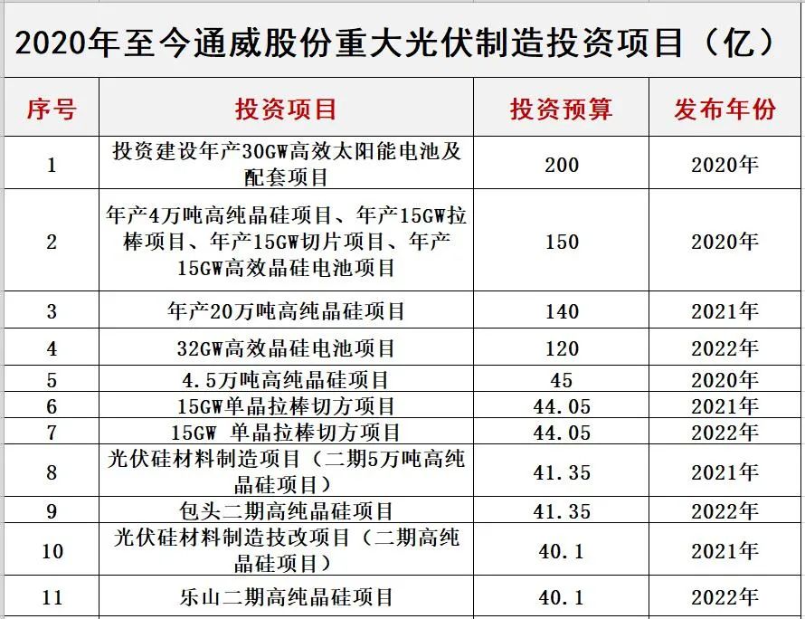就在昨晚(3月31日),通威股份公告,将斥资120亿投建32GW高效晶硅电池产能。
