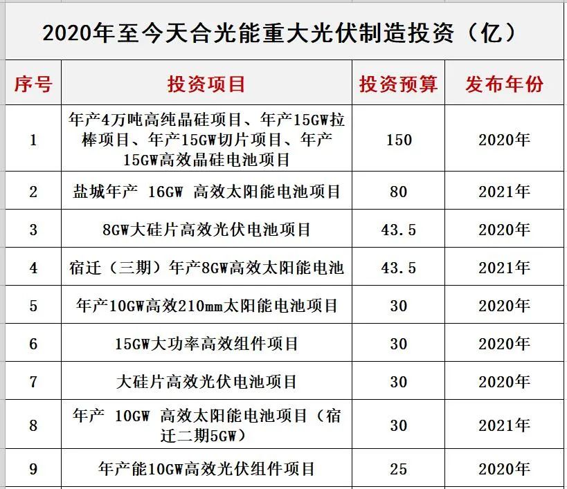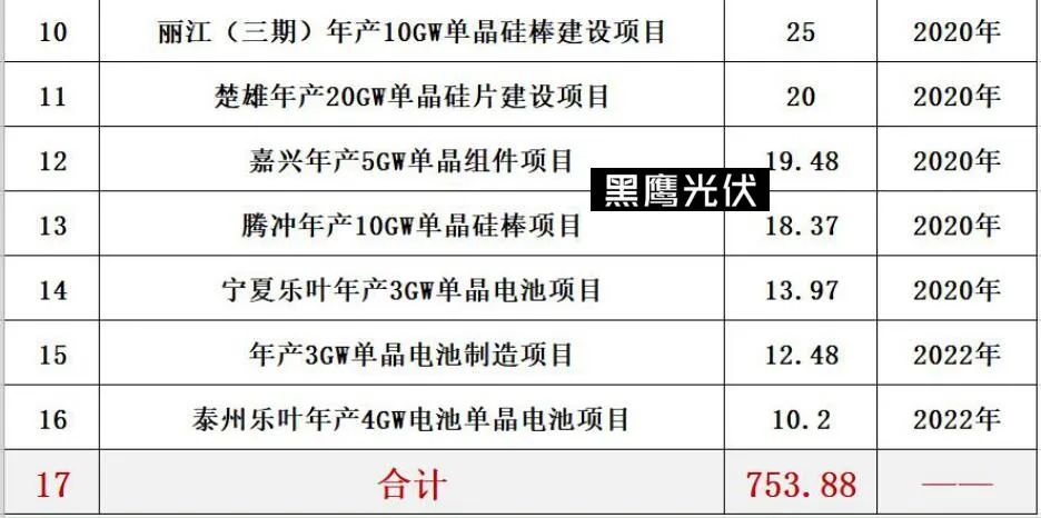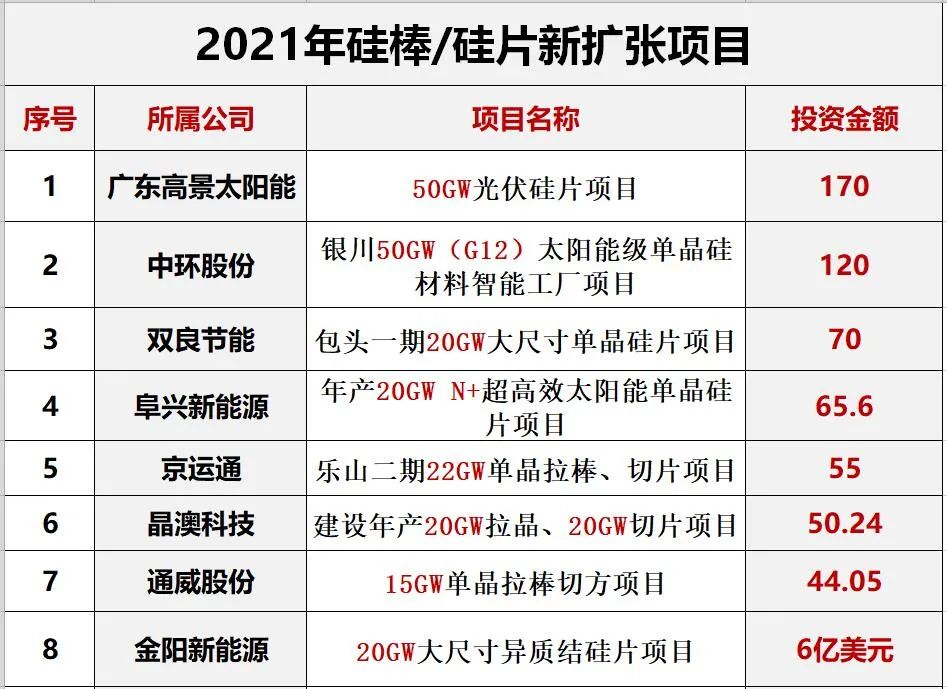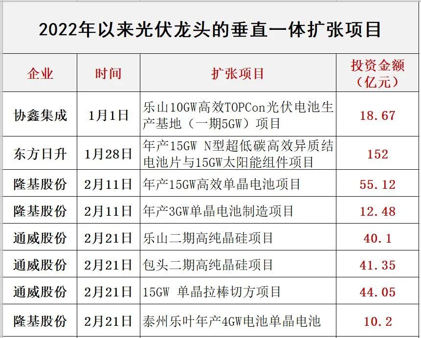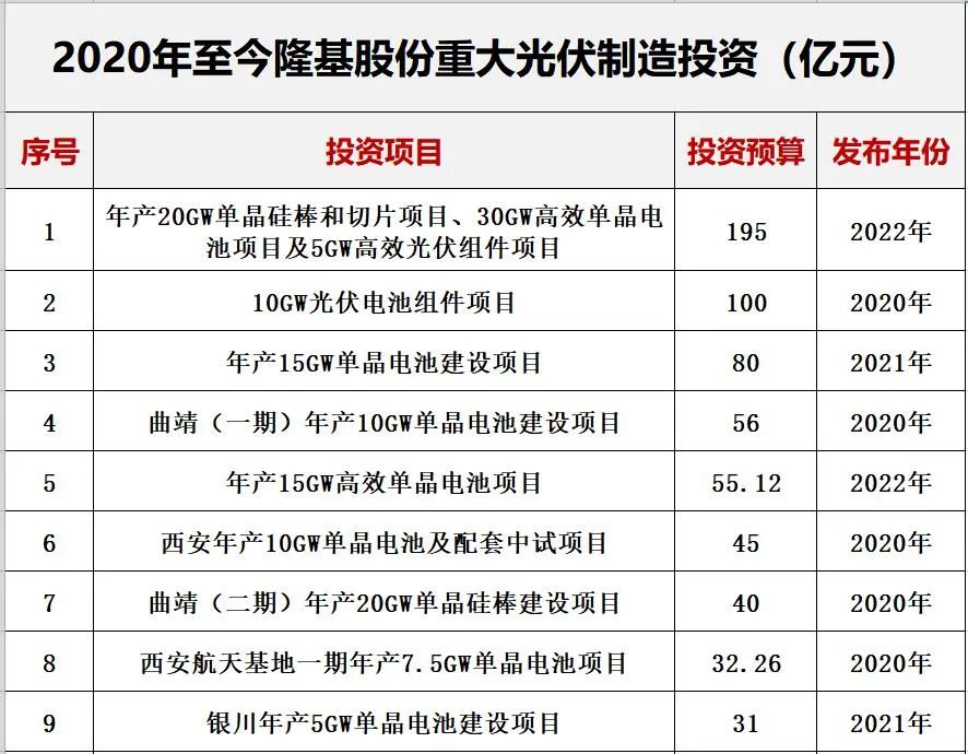 再往前,3月13日晚,隆基股份公告,投资195亿在内蒙古鄂尔多斯投建20GW硅片+30GW电池+5GW组件项目。