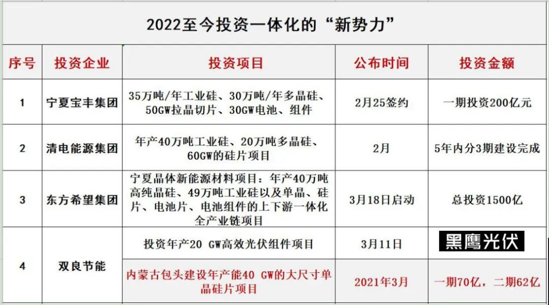 不只是隆基、通威、晶澳、天合、晶科等老牌龙头,更多新进入者也一举瞄定“垂直一体化”,要干全产业链。