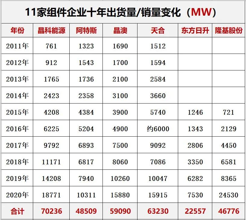 组件环节,根据能源一号的统计预测,隆基、晶科、天合、晶澳、东方日升等龙头的出货在2021年达130GW左右;2022年,TOP5组件企业产能或达250GW以上,强者恒强成为必然。