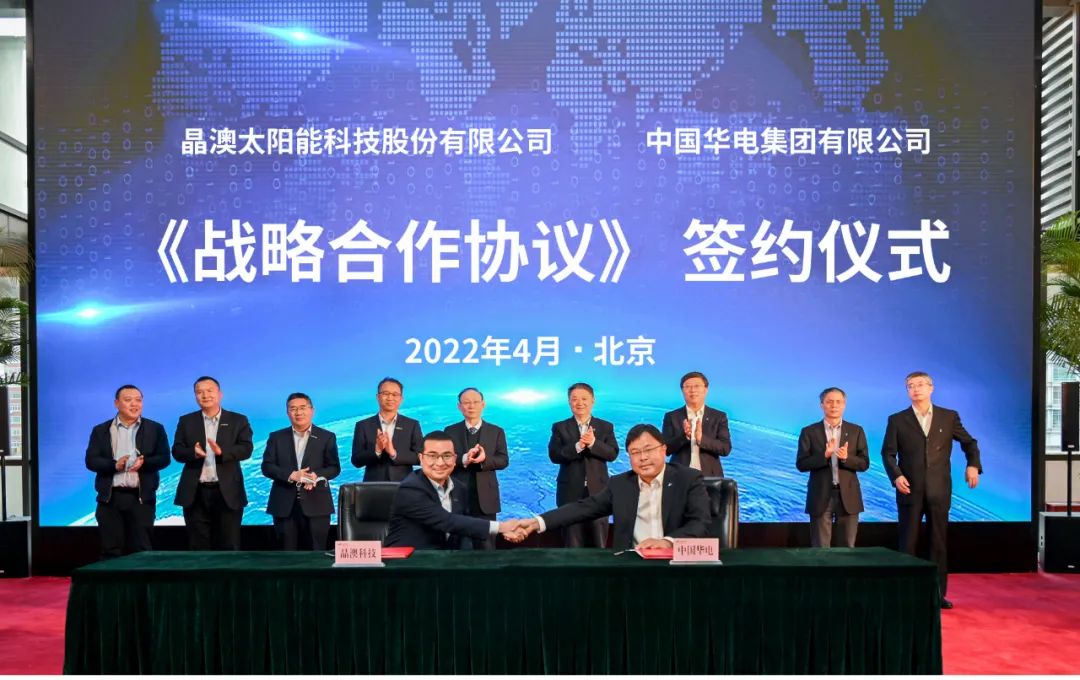 中国华电是国务院国资委监管的特大型中央企业、世界500强企业。晶澳与中国华电合作始于2013年,截至2021年双方累计签署超4GW光伏组件合同,曾合作建设山西大同左云等多个“领跑者”示范项目,在山东、贵州、福建、内蒙古等多地合作建设大型光伏项目,形成了良好的合作关系。此次签署战略合作协议,晶澳科技与中国华电将坚持平等尊重、优势互补、共同发展的原则,充分发挥各自在资金、技术、市场、品牌等方面优势,建立双方高层沟通协调机制,在光伏组件供应、项目开发、技术支持、设备服务采购、产业资源和海外市场开拓等方面开展合作。