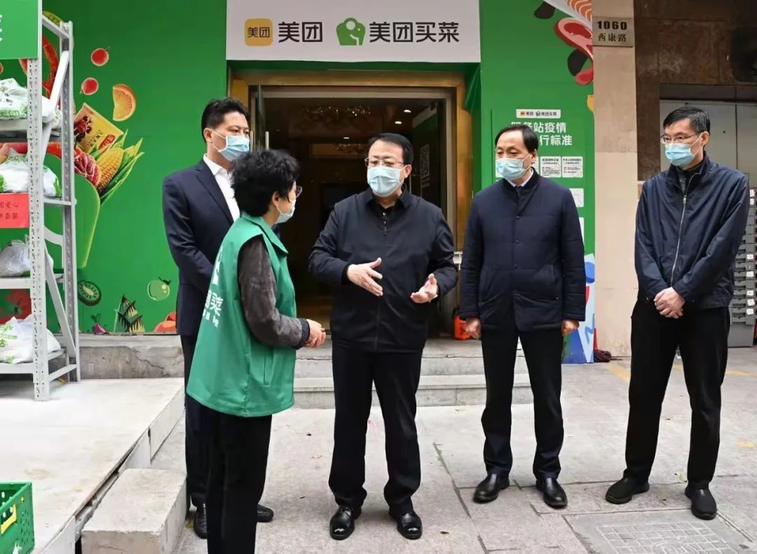 龚正来到美团买菜西康路站点,这里堆放着一包包蔬菜,既有集采集配的“保供套餐”,也有居民单选品种。龚正十分关心封控区居民的生活保障,详细了解下单配送流程及菜价,鼓励企业加强货源组织,增强配送力量,与居委和志愿者做好衔接,并加强自身防疫。他叮嘱区里干部,保供是这段时间重要任务,要调整优化工作手势,打通配送“最后一公里”,确保生活必需品能送到家门。