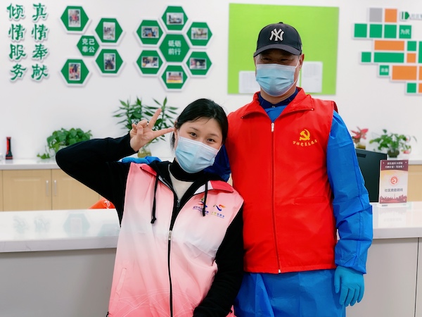 朱火平是一名退休党员,女儿是名“海归”,回国后在和平饭店做西餐师。一家人平时住在虹口区,这段时间回到浦东万祥镇老家,马上主动当起了志愿者。“虽然我们管控区可以下楼在小区里转转,但毕竟还有疫情的风险,我们志愿者在小区里巡逻,尽量劝居民无必要不要在小区里停留,避免人员聚集的风险,居民们也很配合。”