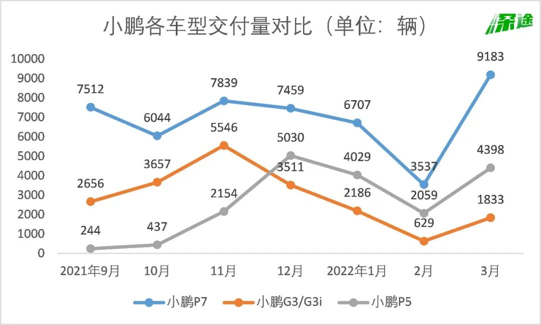 去年小鹏发布了G3i、P5和G9这3款新车(G9只是产品发布,还没有开始交付)。新产品也一定程度上带动了小鹏的销量。