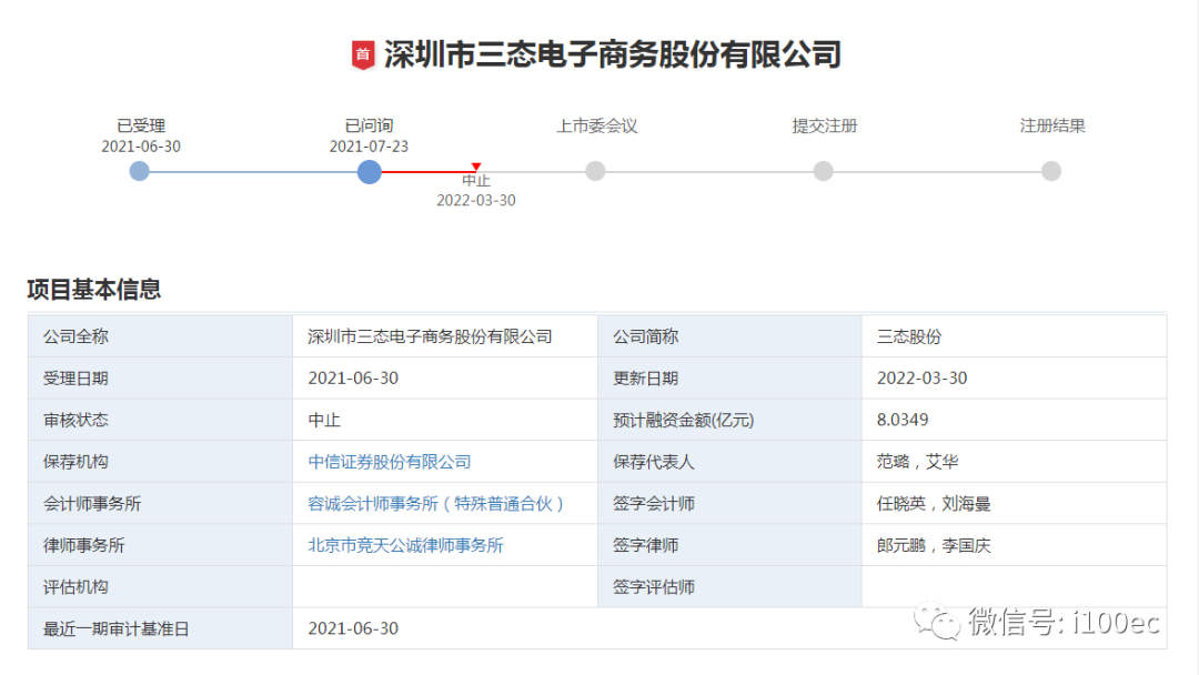 三态股份创业板IPO审核状态已变更为“中止”,中信证券为其保荐机构。据悉,2022年3月30日,因发行人及保荐人更新财务资料,主动申请中止发行上市审核程序,根据《深圳证券交易所创业板股票发行上市审核规则》第六十四条的相关规定,深交所中止三态股份发行上市审核。