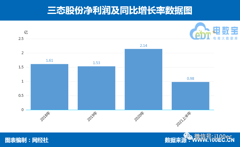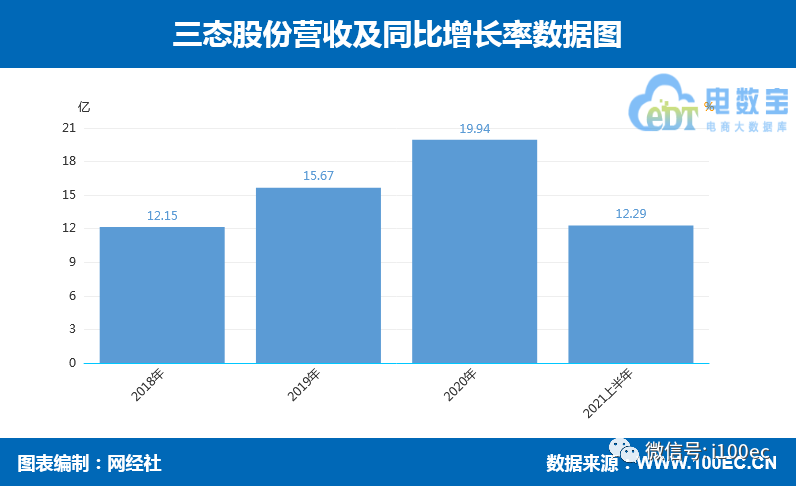 招股书显示,2018年至2021年上半年,三态股份的主营业务收入分别为12.15亿元、15.67亿元、19.93亿元和12.29亿元;归母净利润分别为1.62亿元、1.53亿元、2.14亿元和0.98亿元。报告期内,公司七成主营业务收入来自商品销售,其余则来自物流仓储服务。