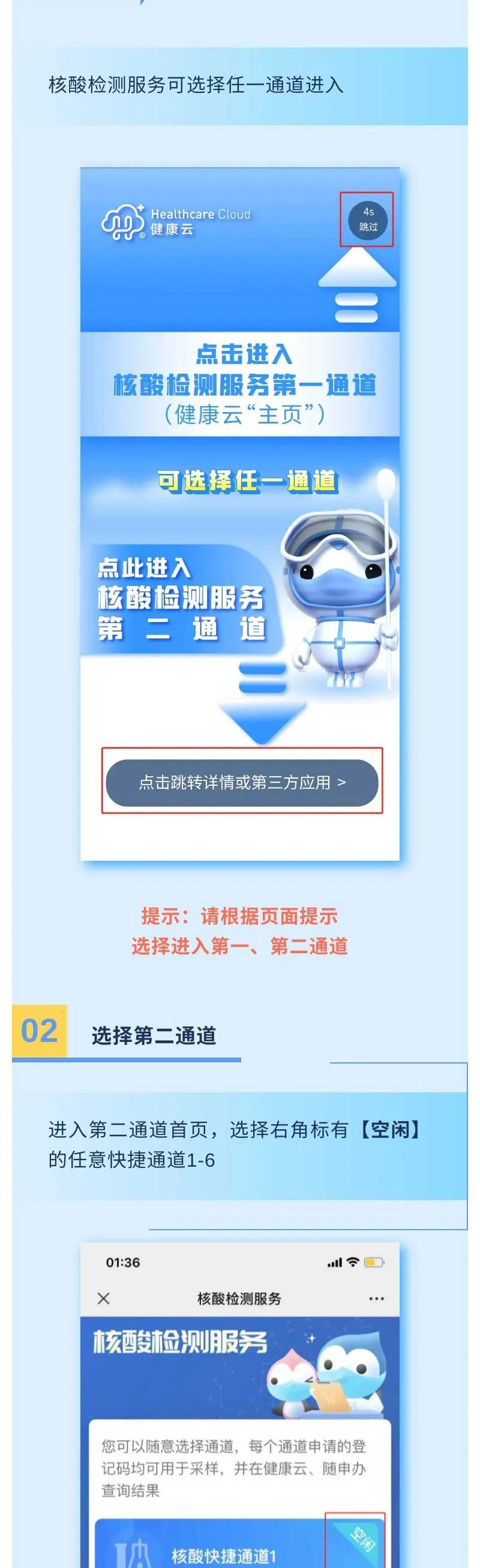 2.为了更通畅地开展核酸检测服务,“健康云”第一、第二通道均可供市民登记时选择。