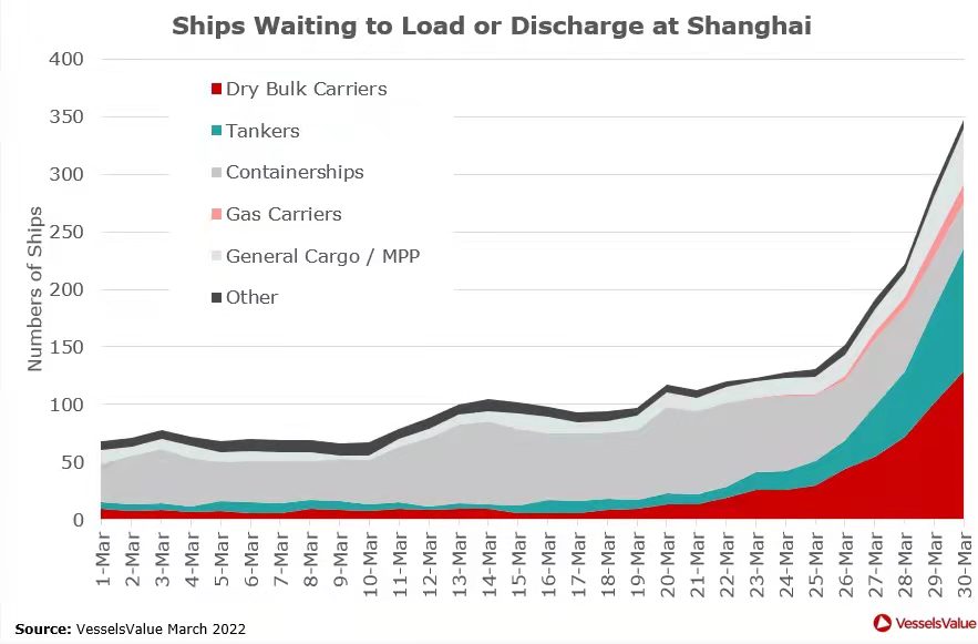 王海进一步指出,根据船舶数据商VesselsValue的公开数据,近期在上海海域附近排队等待的船舶数量在两周半内增加了5倍,不过集装箱船舶排队数量并没有出现大幅增长,主要是干散货船和油轮排队数量出现了大幅增长,而这两种船的目的地更多是宁波舟山港,上海港还是以集装箱船为主。目前上海港仍在保持24小时作业,不过由卡车司机负责的衔接码头货运的陆运方面,的确因为上海地区的封控以及长三角各地疫情防控政策不一而受到了一定的影响。