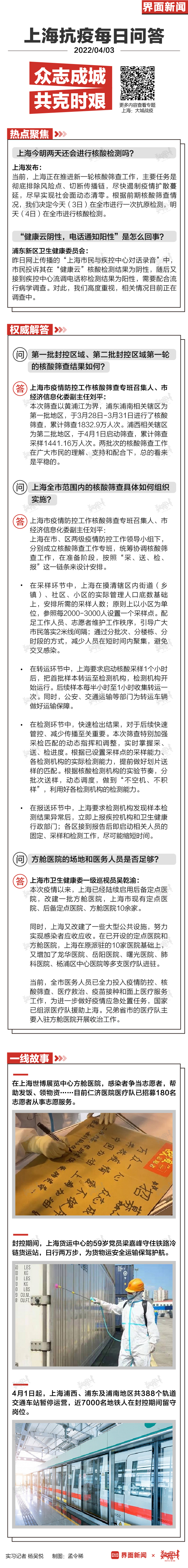 上海今明两天还会进行核酸检测吗?“健康云阴性,电话通知阳性”是怎么回事?方舱医院的场地和医务人员是否足够?……