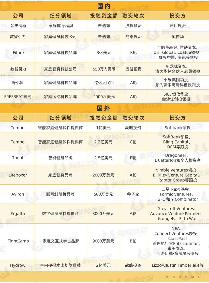 同时这些从团课精品工作室成长起来的品牌,陆续受到资本青睐。去年,Keep完成3.6亿美元F轮融资后估值20亿美金;中国家庭科技健身品牌FITURE完成B轮3亿美元融资;超级猩猩完成数亿元E轮融资;乐刻完成新一轮融资……