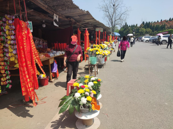 我们注意到,在产业链更下游,线下陵园内鲜花祭祀个体户受到的冲击也明显加剧。对比线上扫墓高则1000多元的一束鲜花,陵园内个体户门面上5元一束的菊花、5至15元一沓的纸币,随着人流的大幅度减少,今年生意也不如往年。