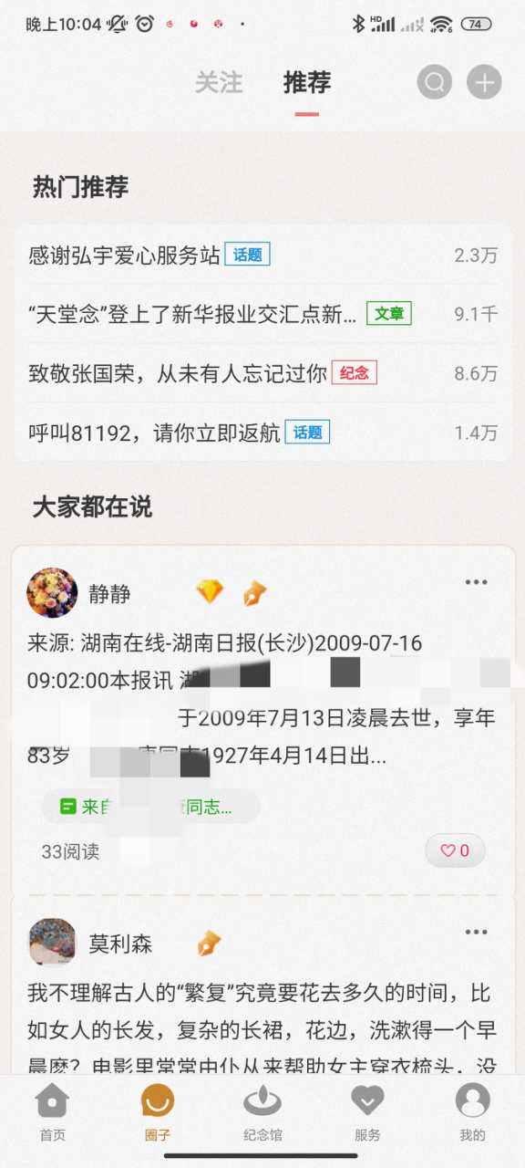 一款名叫天堂念APP上,除了能创建个人纪念馆,用户还能逛圈子带话题发帖被关注。