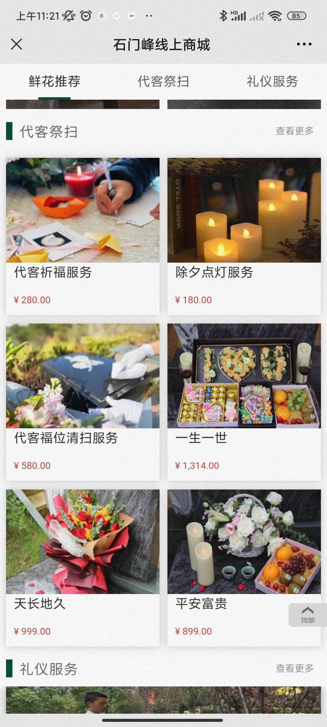 “代客祭扫服务,鲜花售卖服务、礼仪服务”,这是石门峰的线上商城展示的三种服务,具体价格和销量如何?
