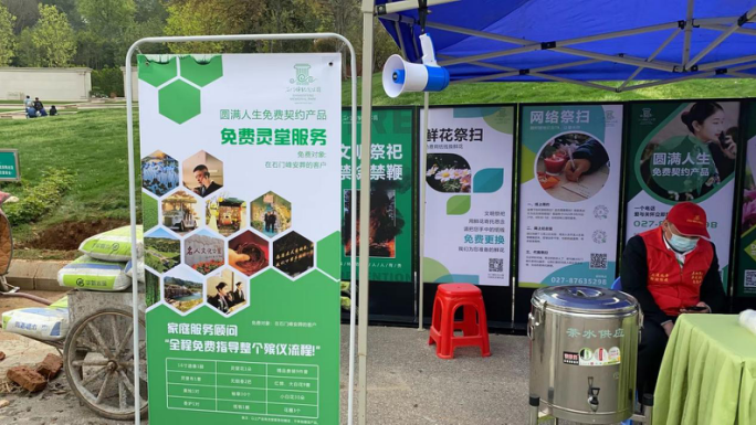 和其他地区公墓一样,“云祭祀”推广告示牌被放在了陵园人流显眼的位置。