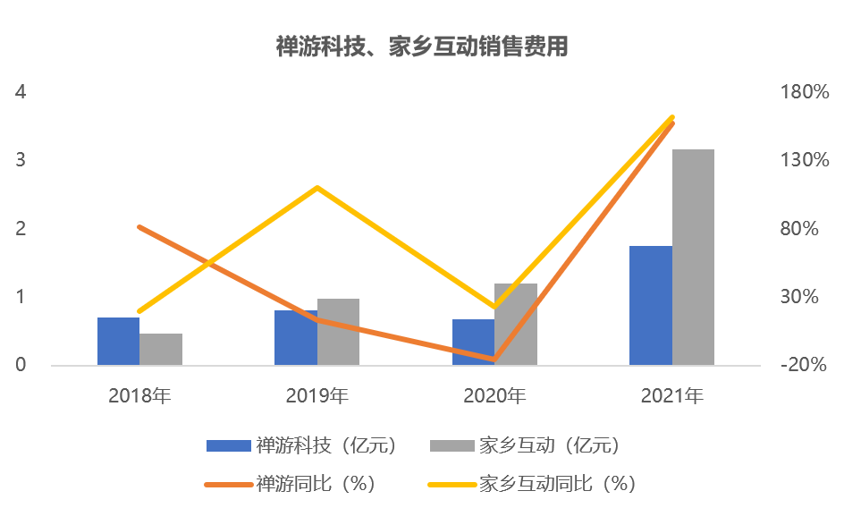 家乡互动21年销售费用同比大增162%,财报指出该增加主要是由于公司为了争取及挽留玩家,年内广告开支增加1.968亿元。