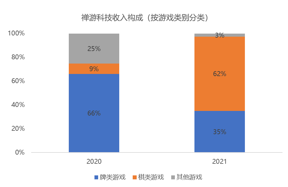 禅游在21年重点押注麻将系列游戏,21年麻将系列游戏收入(约9.2亿元)超过斗地主系列游戏(约5.2亿元),成为禅游最赚钱的游戏品类。