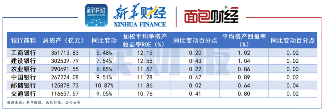 图4:2021年六大行总资产、ROE、ROA及同比变动情况