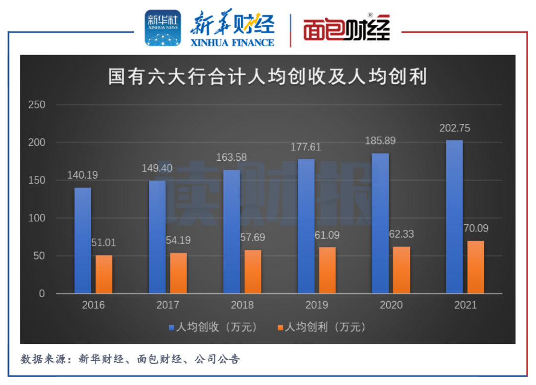 图6:2016-2021年国有六大行合计人均创收及人均创利