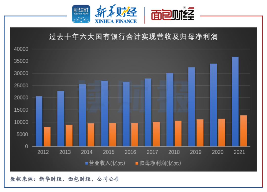 图1:过去10年国有六大行合计实现营收及归母净利润