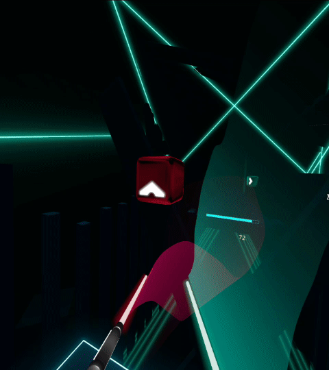 与传统的跳舞机相比,VR健身游戏一个显著优点是“娱乐+沉浸”。就像小洁最近爱玩的《乐动未来:音计划》。这款游戏可以把歌曲的旋律变成可视化的上、下、左、右符号以及高低错落的“墙”,在听歌的同时需要挥动手柄“砍”向迎面飞来的音符,并通过跳跃、蹲下等来躲避障碍物,一个流程能消耗四五百卡的热量。