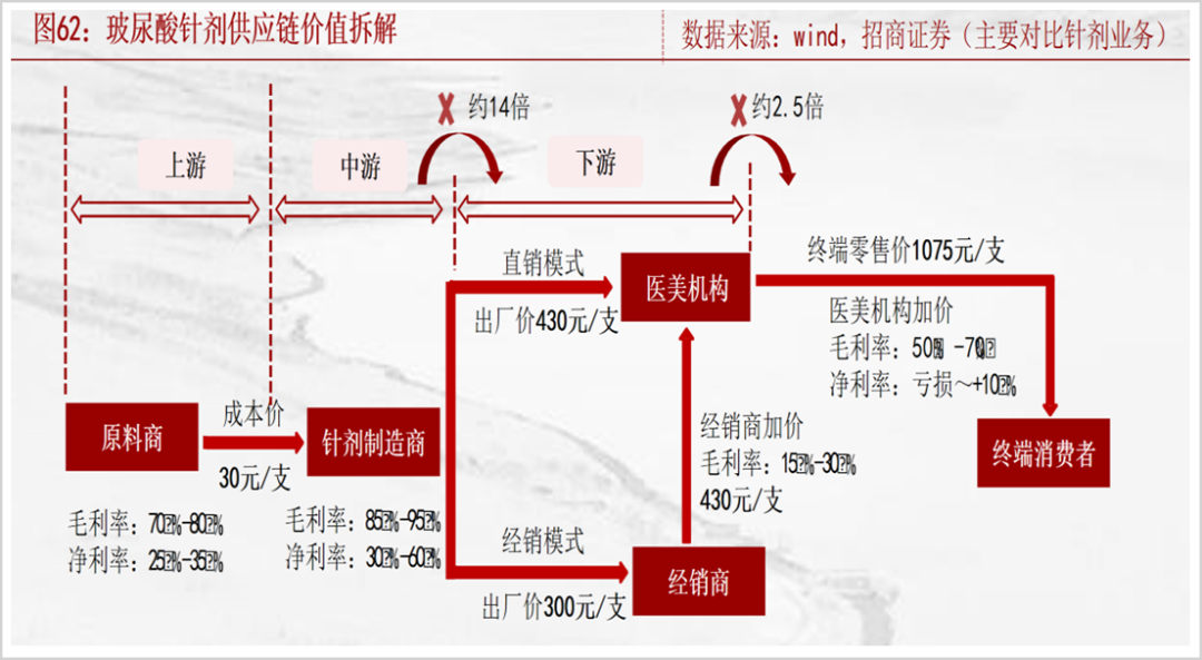 华熙生物所在的玻尿酸产业,从原料端开始科技含量就比较高,利润相对丰厚,吸引了大量的市场参与者进来,尤其是在门槛较低的下游服务领域。