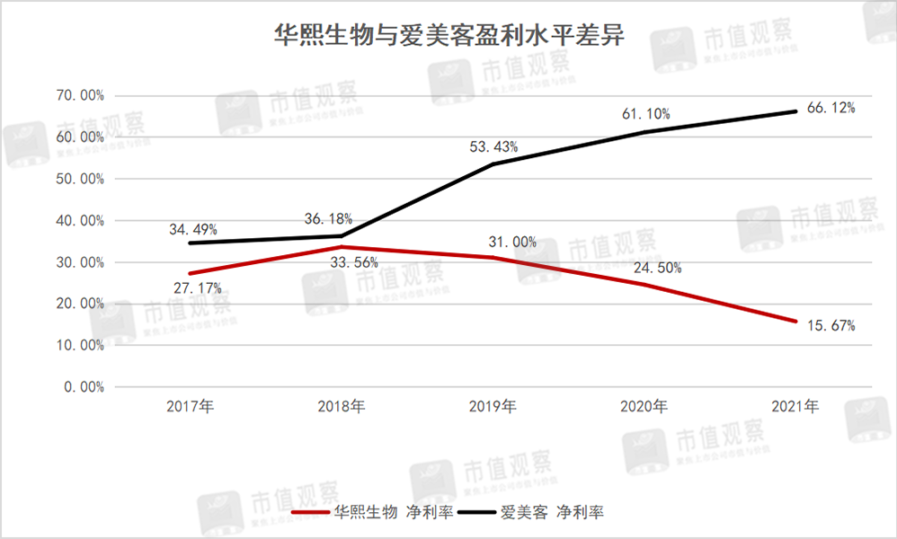 然而,双方在赚钱效应上却出现巨大分野,爱美客在营收不及华熙生物三成的情况下,净利润对后者实现了首次反超。