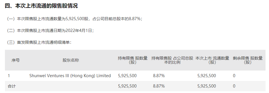 2022年4月1日,顺为资本持有的592.55万股均已上市流通,该解禁股占上市公司总股本的8.87%。倘若顺为资本要进行减持,会对石头科技的股价产生一定的抛压。