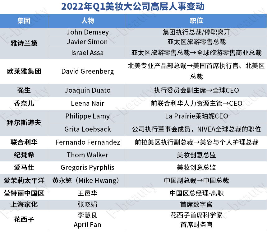 2022年,疫情的阴霾依然没有散去,互联网大厂不约而同掀起裁员潮,中外美妆巨头也纷纷寻求革新创利的新机会。除了聚焦核心业务,短短三个月里,中外美妆大公司接连官宣的高层人事调整冲击着业界的神经,变动情况甚至比过去一年还要多。