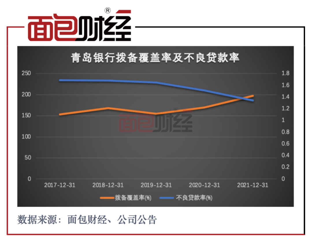 截至2021年末,青岛银行不良贷款率为1.34%,较上年末下降0.17个百分点;拨备覆盖率为197.42%,较上年末增长27.8个百分点。