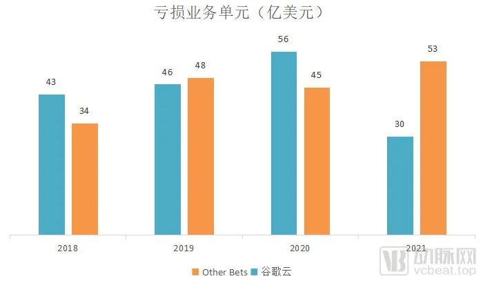 Other Bets和谷歌云过去4年的亏损情况,数据源于公司年报