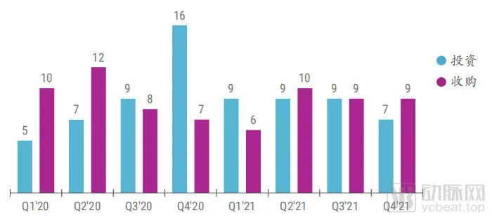 包括谷歌在内的美国5大科技企业(谷歌、微软、亚马逊、苹果和Facebook),整体的收购趋势开始放缓。对外的股权投资数量在2020年的波动之后,2021年开始趋于稳定。