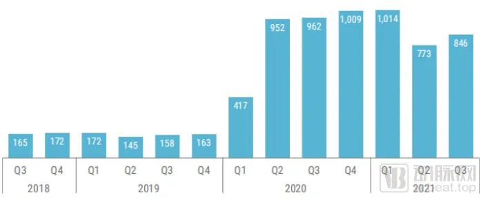GV2021年投资分布,数据源于CBInsights
