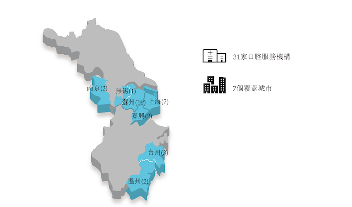 2012年牙博士在苏州开设首间口腔服务机构,截至最后实际可行日期,牙博士在华东地区拥有31家口腔服务机构,涵盖苏州、南京、上海及温州等华东地区的主要城市。其中19家牙博士位于苏州,占公司全部口腔机构的六成。另台州有3家、上海、温州、南京和嘉兴各2家,无锡1家,整体布局仍困于苏州。