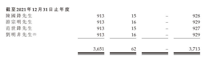 据牙博士招股书披露,2019年牙博士执行董事与最高行政人员陈国峰、游宗明分别领薪46.7万元。至2021年,公司执行董事及最高行政人员陈国峰、游宗明、范世锋以及刘明非从公司领取薪酬均在92万元之上,相较于2019年涨了近一倍。