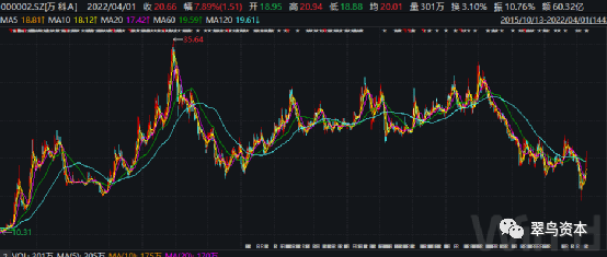 但万科股价并未创出新高,然而2021年抱团股解崩,万科股价再次不断下探,甚至比2018年末低点还要低。