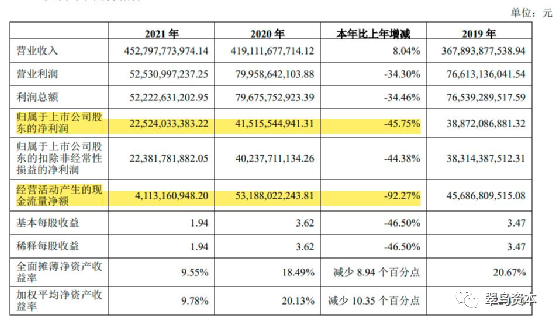 其最新年报显示,2021年万科实现营业收入4528亿元,同比增长8%;归属于上市公司股东的净利润225.2亿元,同比下降45.7%。