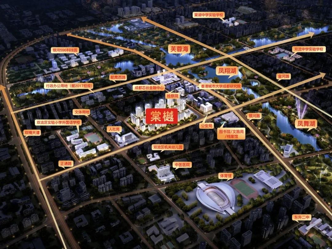 2017年,双流区“一港两湖”空间发展格局,杨柳湖被定位为双流主中心,《2019年双流区政府工作报告》明确提出,以重大项目为引领,把杨柳湖打造为成都副中心、双流新中心。凤翔湖板块作为传统政务板块,目前已经汇聚了双流人社局、公安局、法院、检察院、住建局、图书馆、体育中心等政府职能部门。