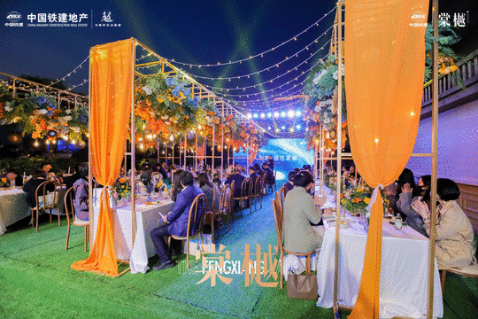 在项目品鉴环节后,来到主会场,整个会场以户外轻松的主题包装,烘托了闲适安逸的场景,营造了中国铁建·棠樾湖居的高端生活氛围。整场晚宴在轻松、自由、休闲的氛围中进行,一场视觉、听觉的宴会,伴随着春风的和煦、音乐的节拍,开启了属于中国铁建·棠樾的美好生活。
